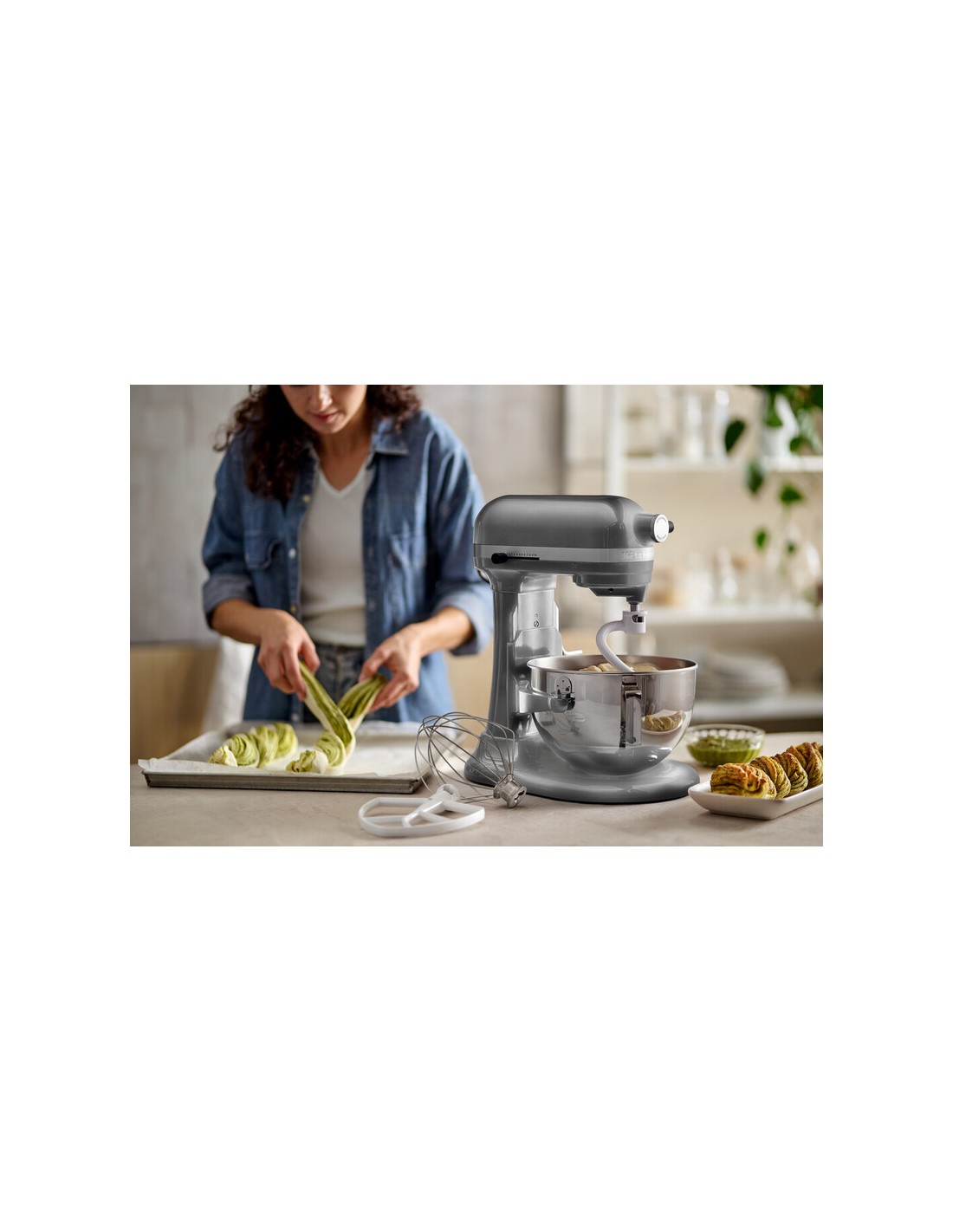 Impastatrice Planetaria KitchenAid colore argento con ciotola da 5,2 lt. Elegante e funzionale l' impastatrice Kitchenaid è dotata di 3 accessori in alluminio smaltato: spatola, frusta e gancio per impastare.