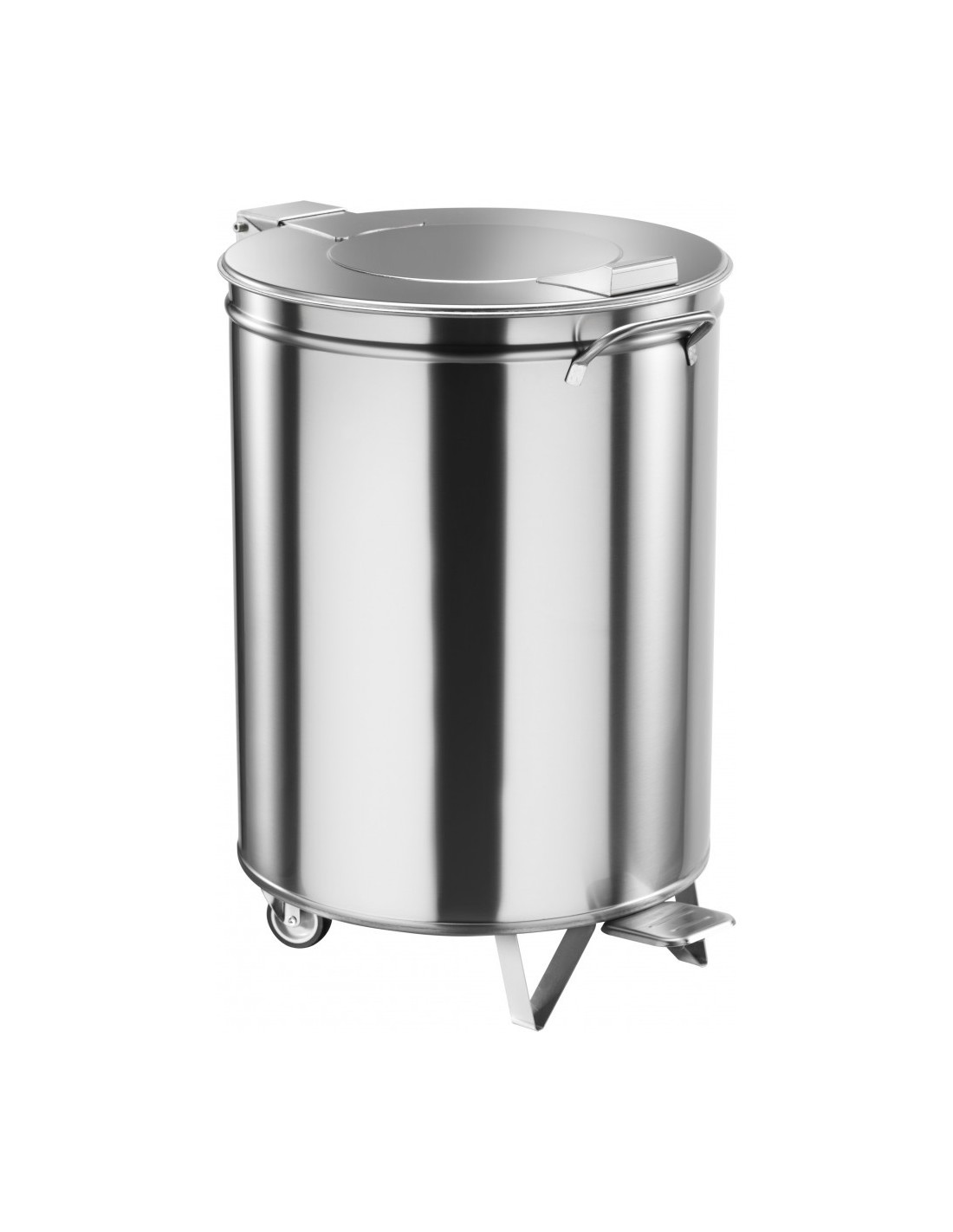 Portarifiuti inox con ruote. Portarifiuti con pedale. Capacità 50 lt. Dimensione portarifiuti Diametro 39x60h cm