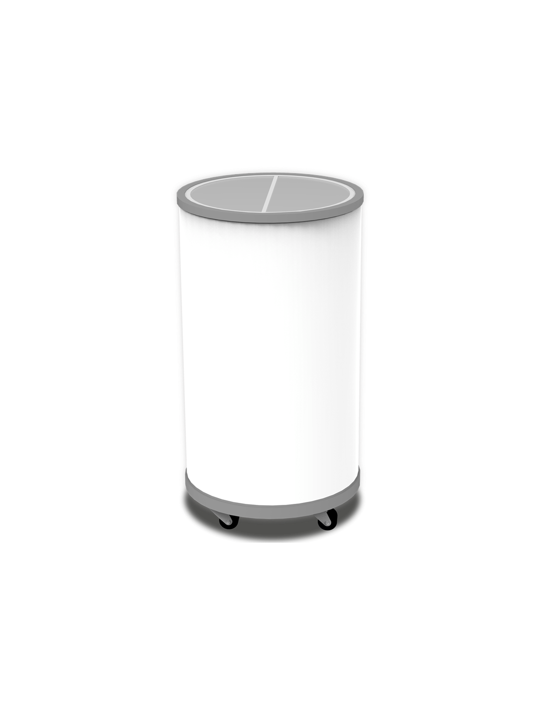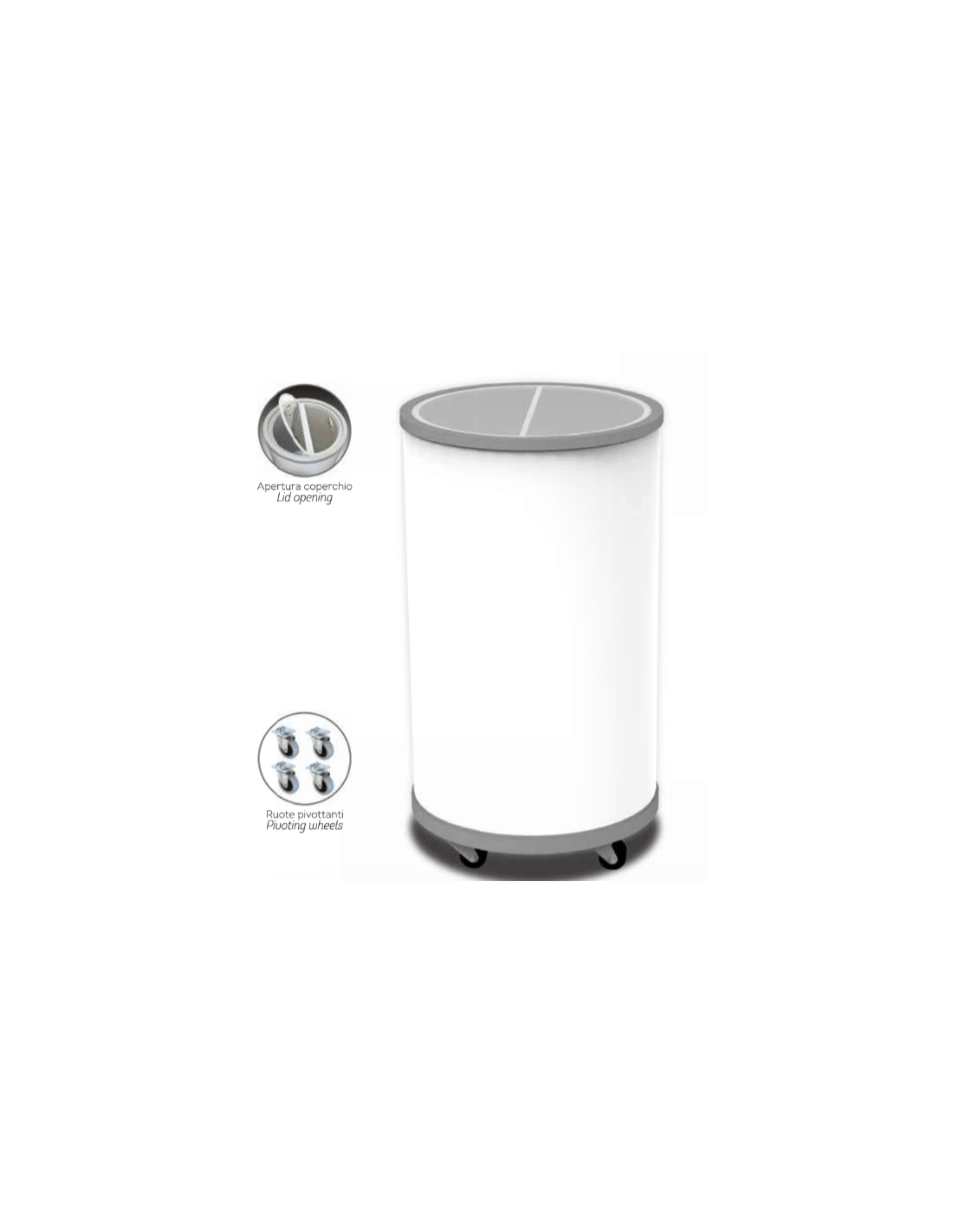 Frigorifero Pozzetto rotondo colore bianco. Pozzetto frigo bianco per bevande per bottiglie e lattine con vetro superiore.