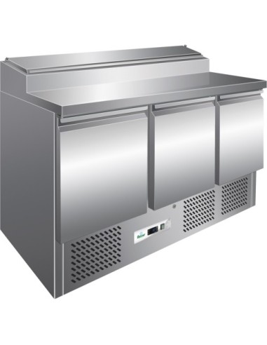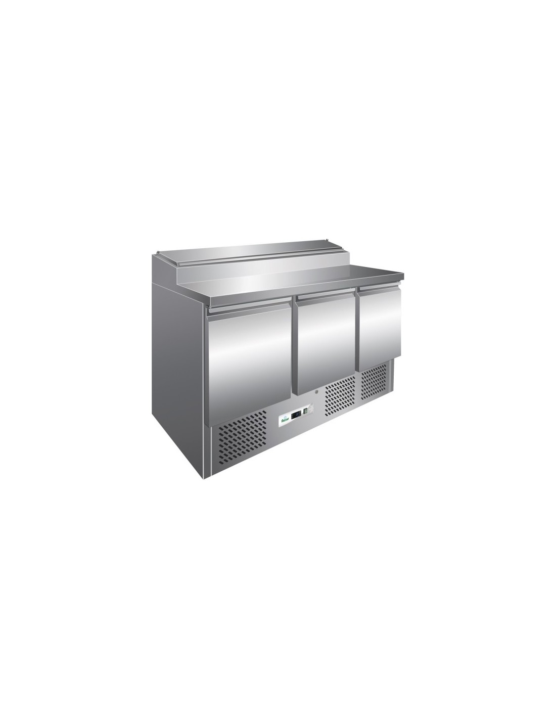 Saladette refrigerata Forcar per insalate, ingredienti e condimenti con Struttura in Acciaio Inox AISI 304. Saladette refrigerata con tre porte