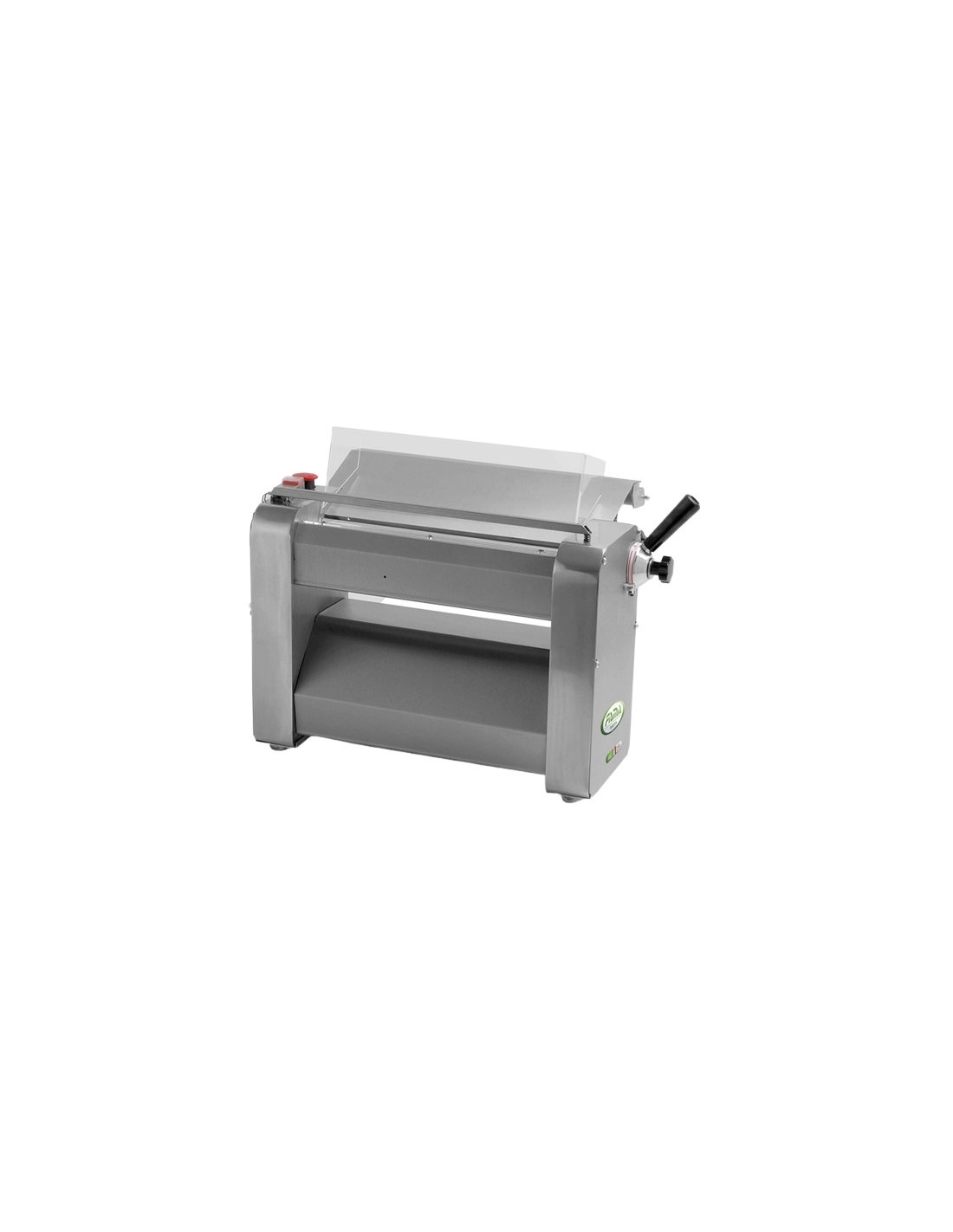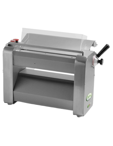 Sfogliatrice elettrica Fama Industrie con rulli inox. Sfogliatrice elettrica professionale larghezza sfoglia 400 mm per qualsiasi spessore desiderato di sfoglia per pizza, pasta all' uovo, piadine, impasto per ravioli.