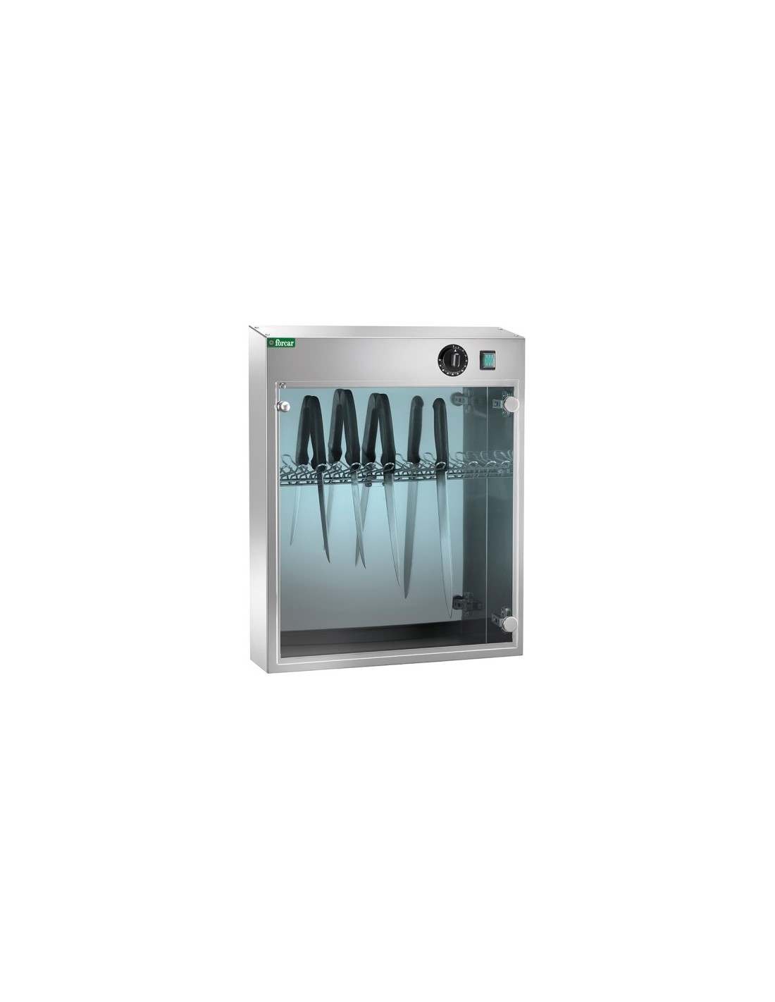 Armadietto sterilizzatore a raggi UV Forcar. Sterilizzatore Coltelli Costruito in acciaio inox Scotch Brite. Sterilizzatore adatto per 14 Coltelli