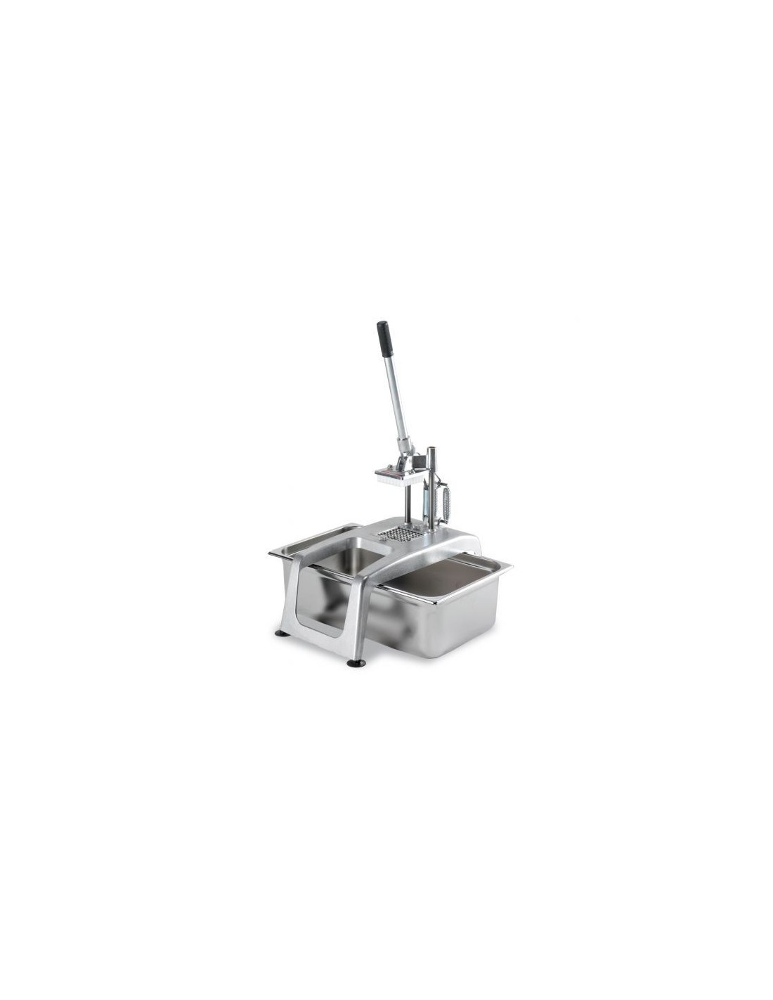 Tagliapatate manuale da banco con corpo in lega leggera inossidabile con incluso un Set Taglio 10x10 mm. Macchina manuale per tagliare le patate a listelli o stick