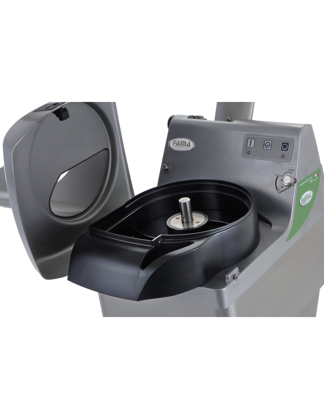 Tagliaverdure elettrico Fama Industrie. Tagliaverdure elettrico professionale con con disco espulsore per tagliare frutta e verdura.