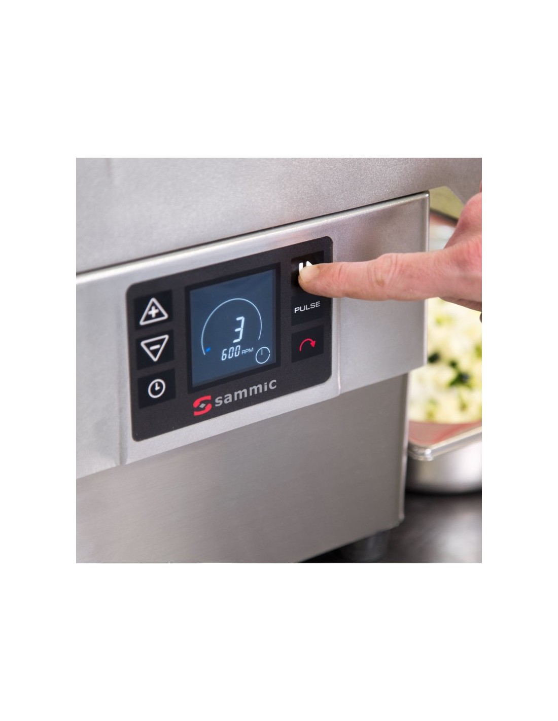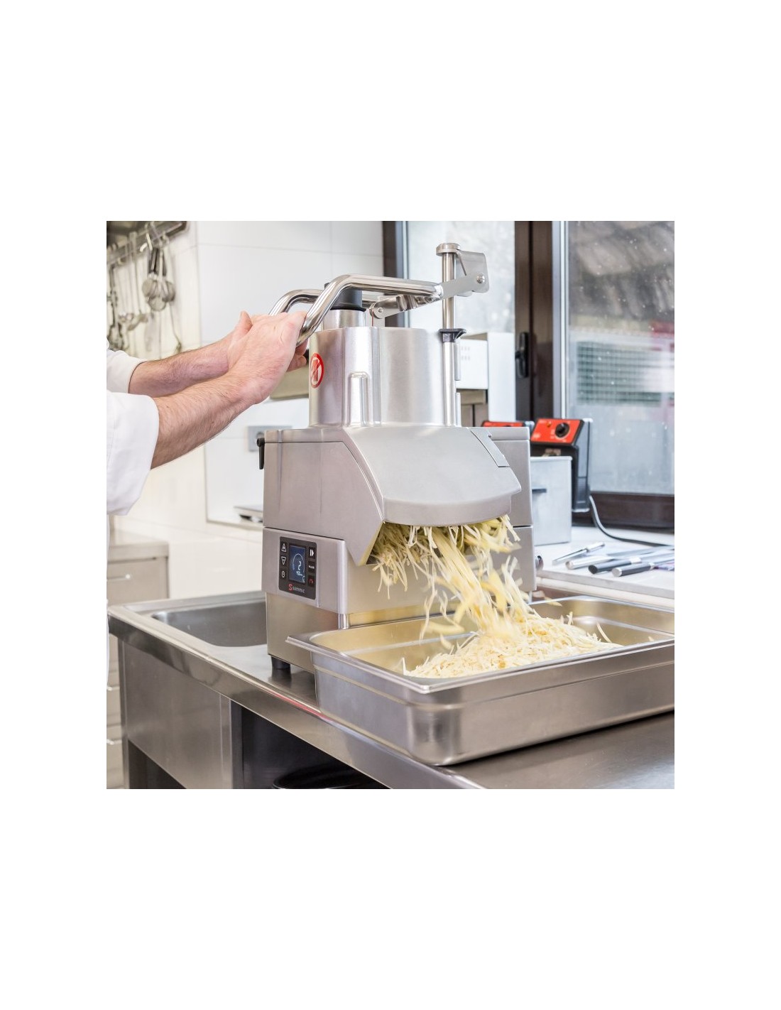Tagliaverdure elettrico Sammic per grandi produzioni fino a 650 kg ora. Tagliaverdure elettrico con velocità variabile realizzato in acciaio inox e materiali alimentari di altissima qualità.