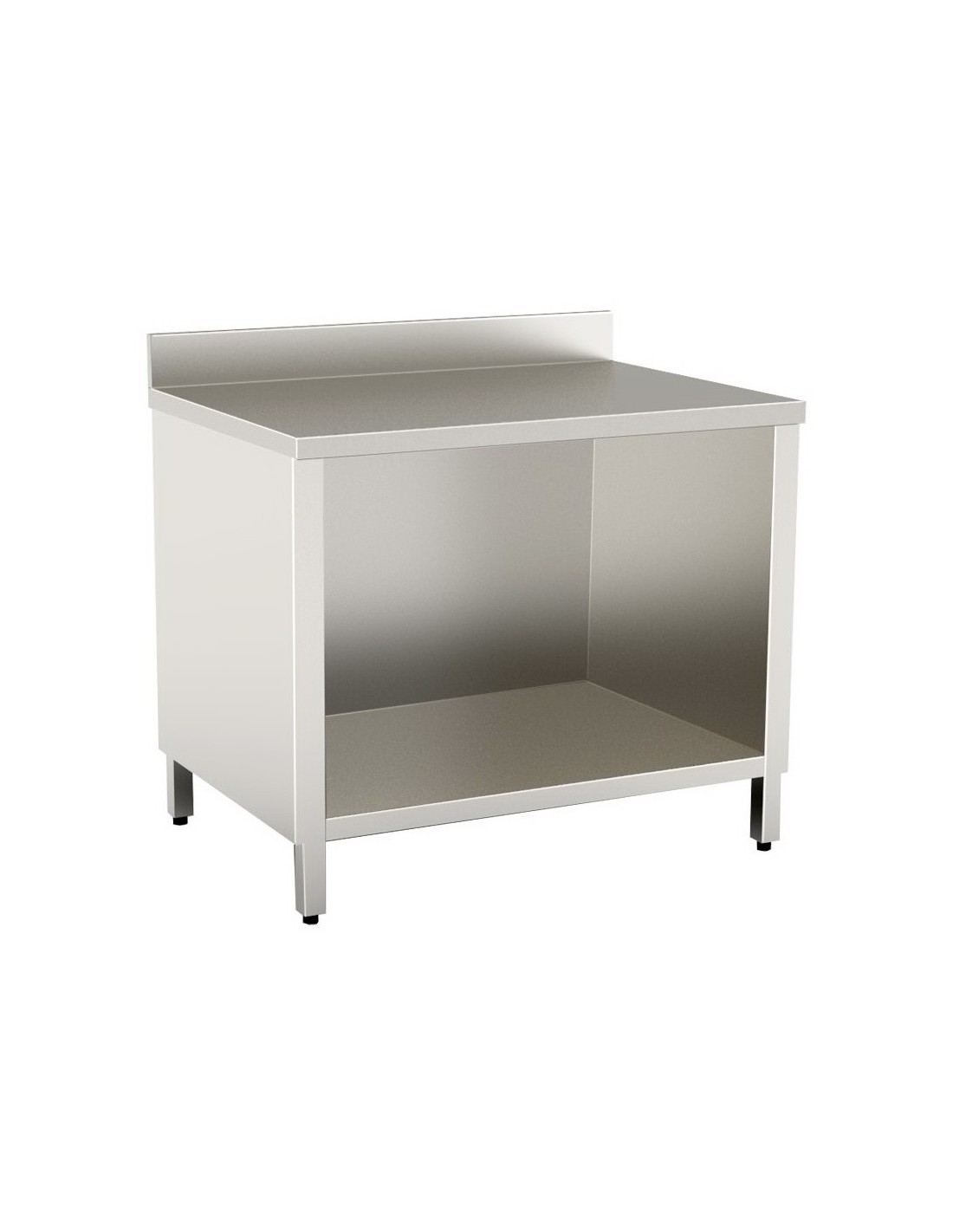 Tavolo armadiato a giorno con alzatina. Tavolo armadiato in acciaio inox aperto per cucina professionale.