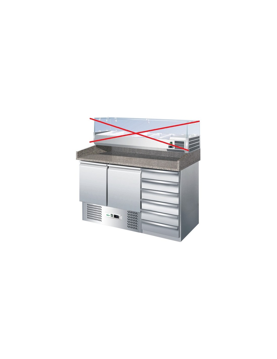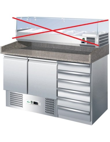 Bancone refrigerato per lavorazione impasto Forcar. Bancone refrigerato per pizza con piano in granito, due porte e cassettiera