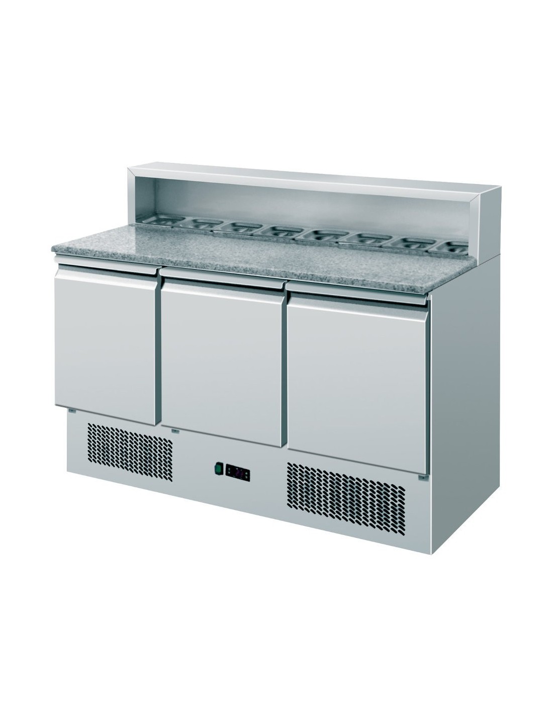 Banco Refrigerato Statico Amitek per Pizzeria con 3 sportelli. Bancone refrigerato con TOP in granito adatto per 8 Gastronorm 1/6 H150 mm