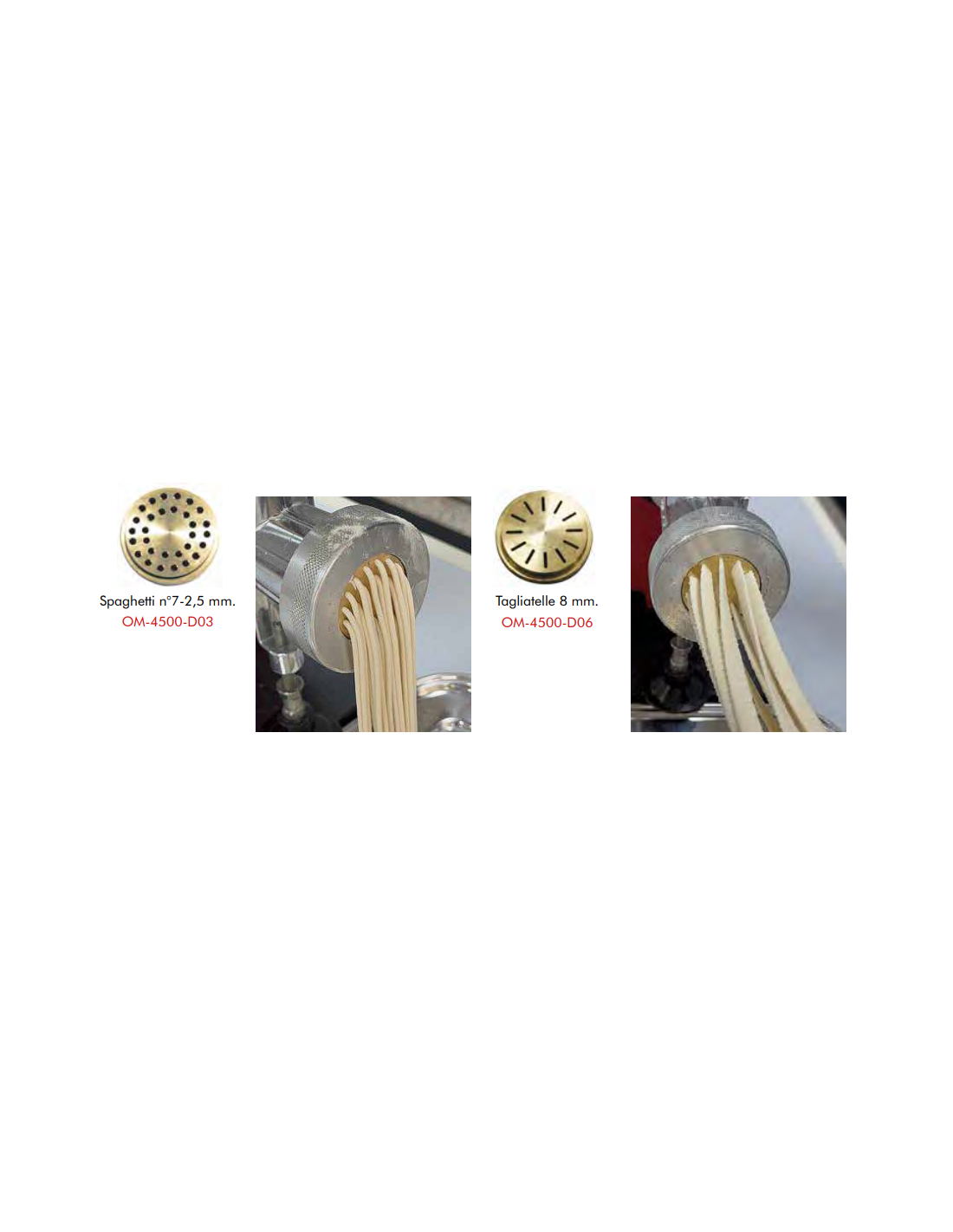 Torchio per pasta elettrico NEW OMRA. Torchio elettrico per pasta fresca con elica in ottone potenza di 900W. In dotazione 2 trafile come da foto: SPAGHETTI N° 7 da 2,5 mm E TAGLIATELLE DA 8 mm. Diametro trafile 45 mm
