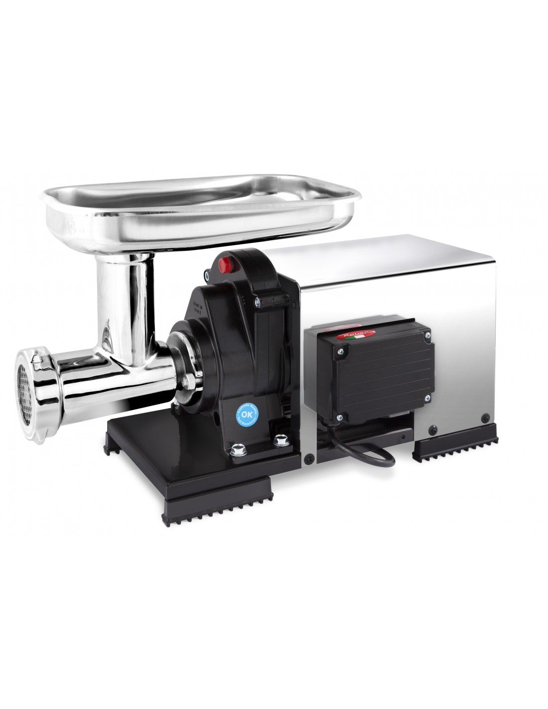 Tritacarne inox domestico di Reber con Piastra diametro 4,5 mm e coltello in acciaio di serie, idoneo al contatto con gli alimenti, che non necessita di manutenzione