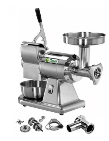 Tritacarne Grattugia di Fimar. Abbinato Tritacarne Grattugia professionale con Struttura in alluminio lucidato con tramoggia in acciaio inox