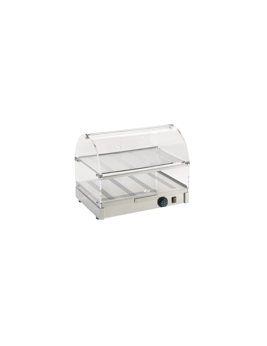 Vetrina Riscaldata da Banco. Vetrina riscaldata sopra banco con due ripiani per esposizione per cornetti e brioches con anta rotonda