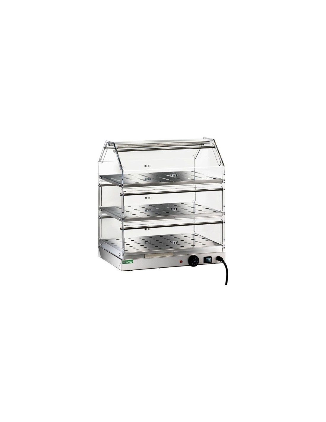 Vetrina Calda da banco di Forcar per cornetti e gastronomia con 3 Ripiani. Vetrina riscaldata da banco ideale per caffetterie, enoteche, chioschi, pub e gastronomie.