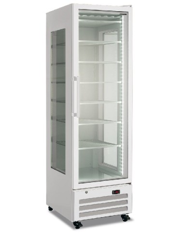 Congelatore verticale per Gelateria Klimaitalia 6 ripiani mm 465 x 563. Frigo pasticceria e gelateria statica negativa, colore esterno bianco, con tre lati vetro