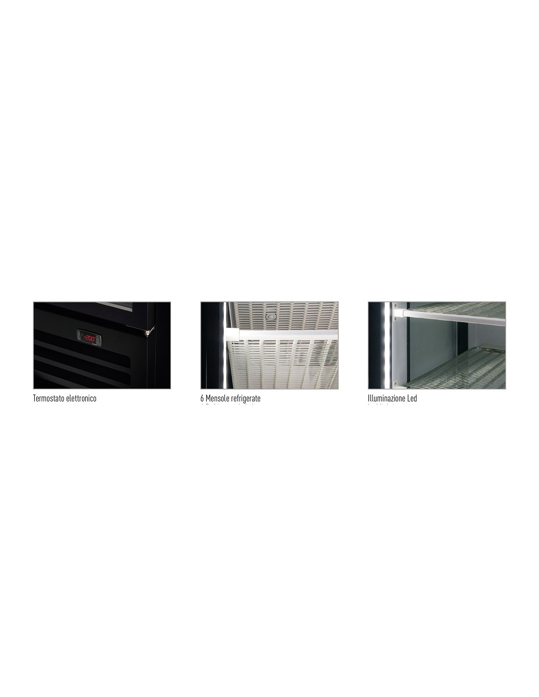 Superficie sterna ed interna in lamiera verniciata. Termostato elettronico. Spessore isolamento 65 mm