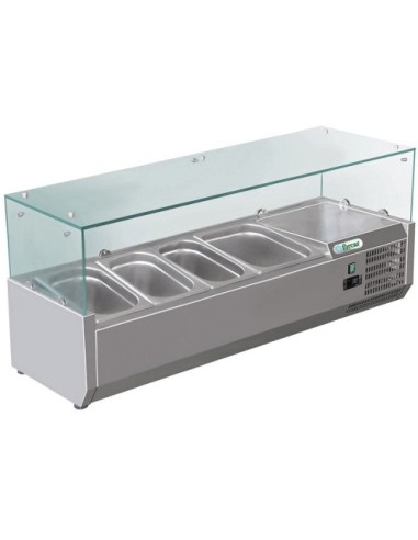 Vetrina Refrigerata da Banco Forcar. Vetrina porta ingredienti per pizzeria con copertura in vetro per 4 bacinelle gastronorm 3 GN 1/3 + 1 GN 1/2