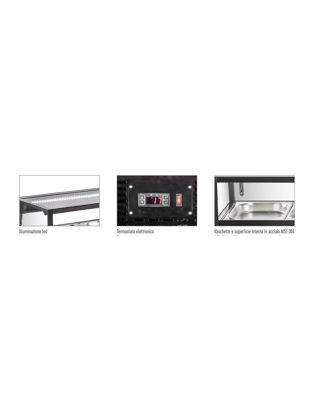 Superficie sterna vetro e plastica, interna in acciaio inox. Termostato elettronico. Spessore isolamento 32 mm
