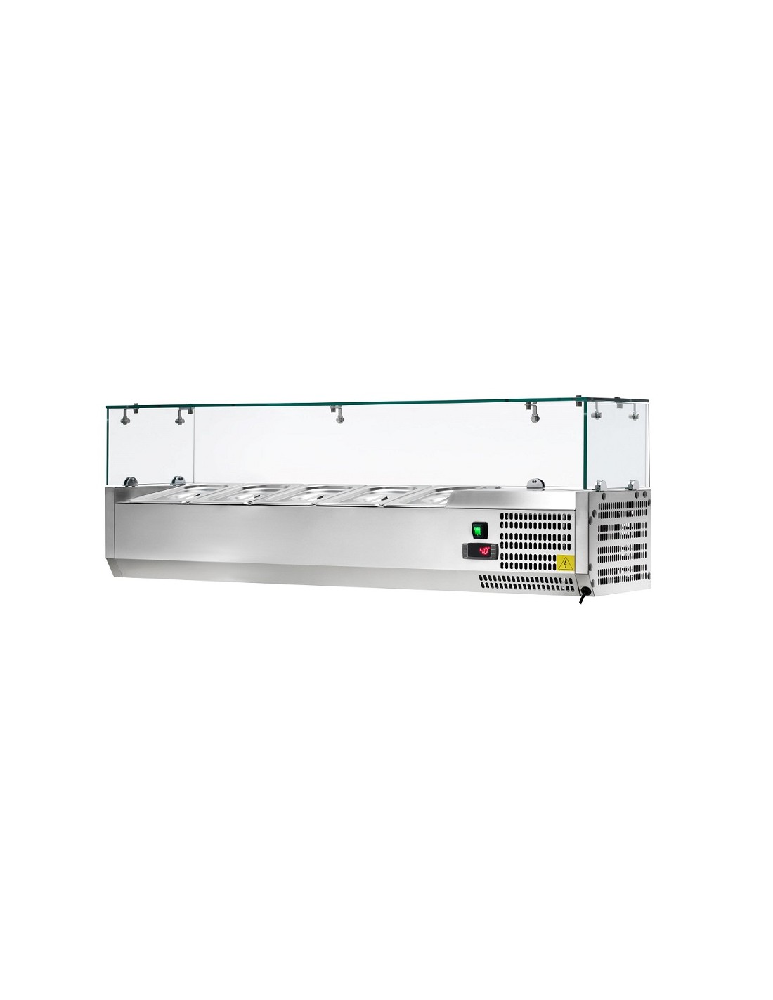 Vetrina refrigerata porta ingredienti Amitek. Vetrina refrigerata per ingredienti pizza con copertura in vetro per 5 bacinelle gastronorm 1/4
